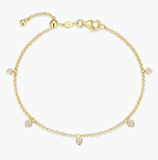 Dangling Hearts Sterling & 14k Yellow Gold Plated Lab Grown Diamond Bracelet
