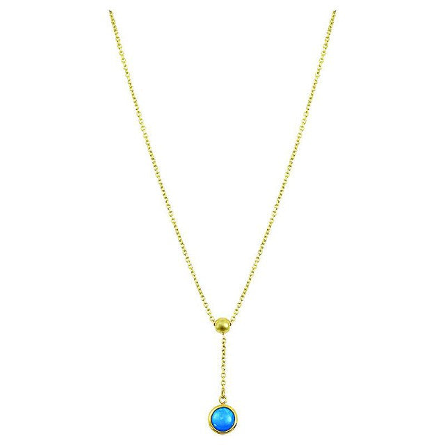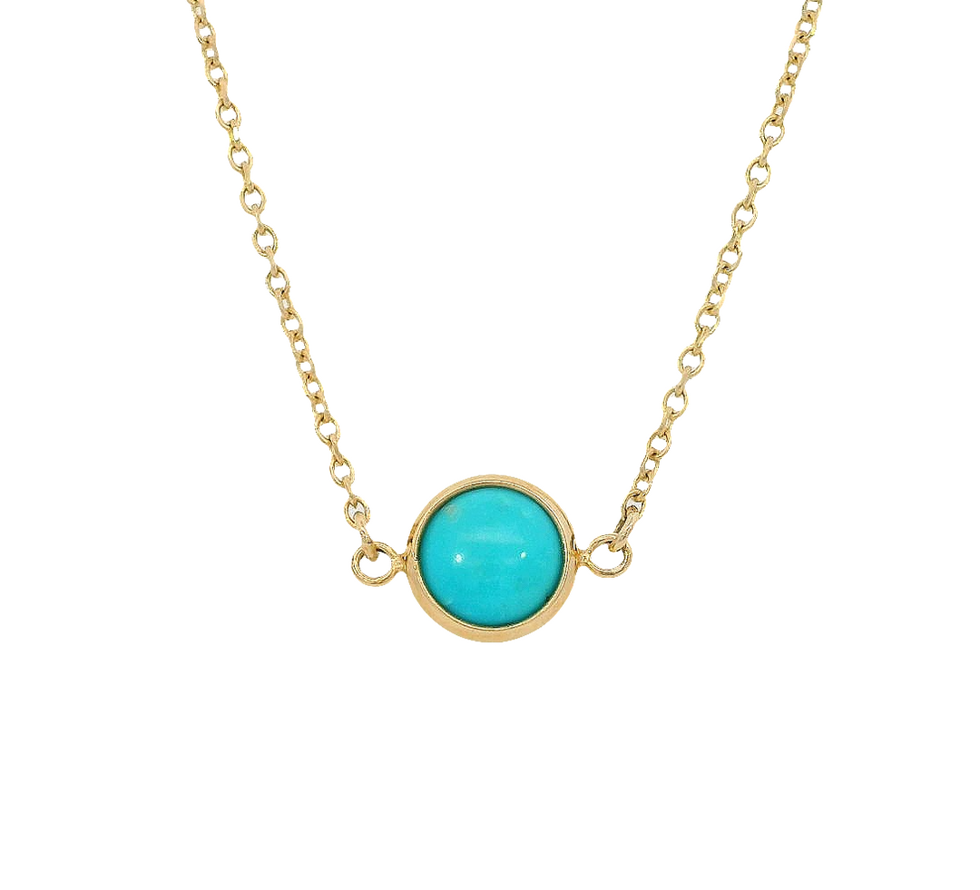 14k Yellow Gold Round Turquoise Single Gemstone Necklace