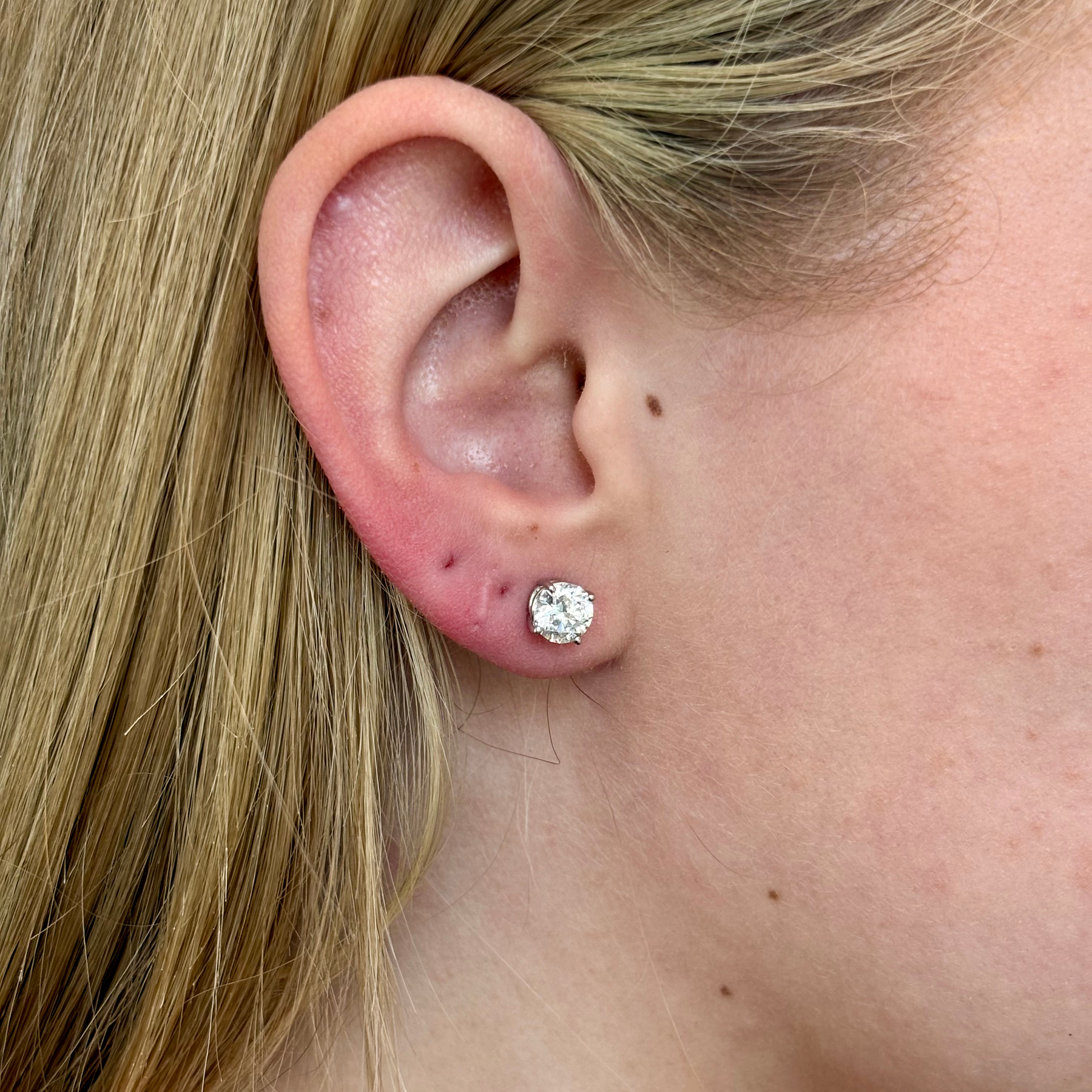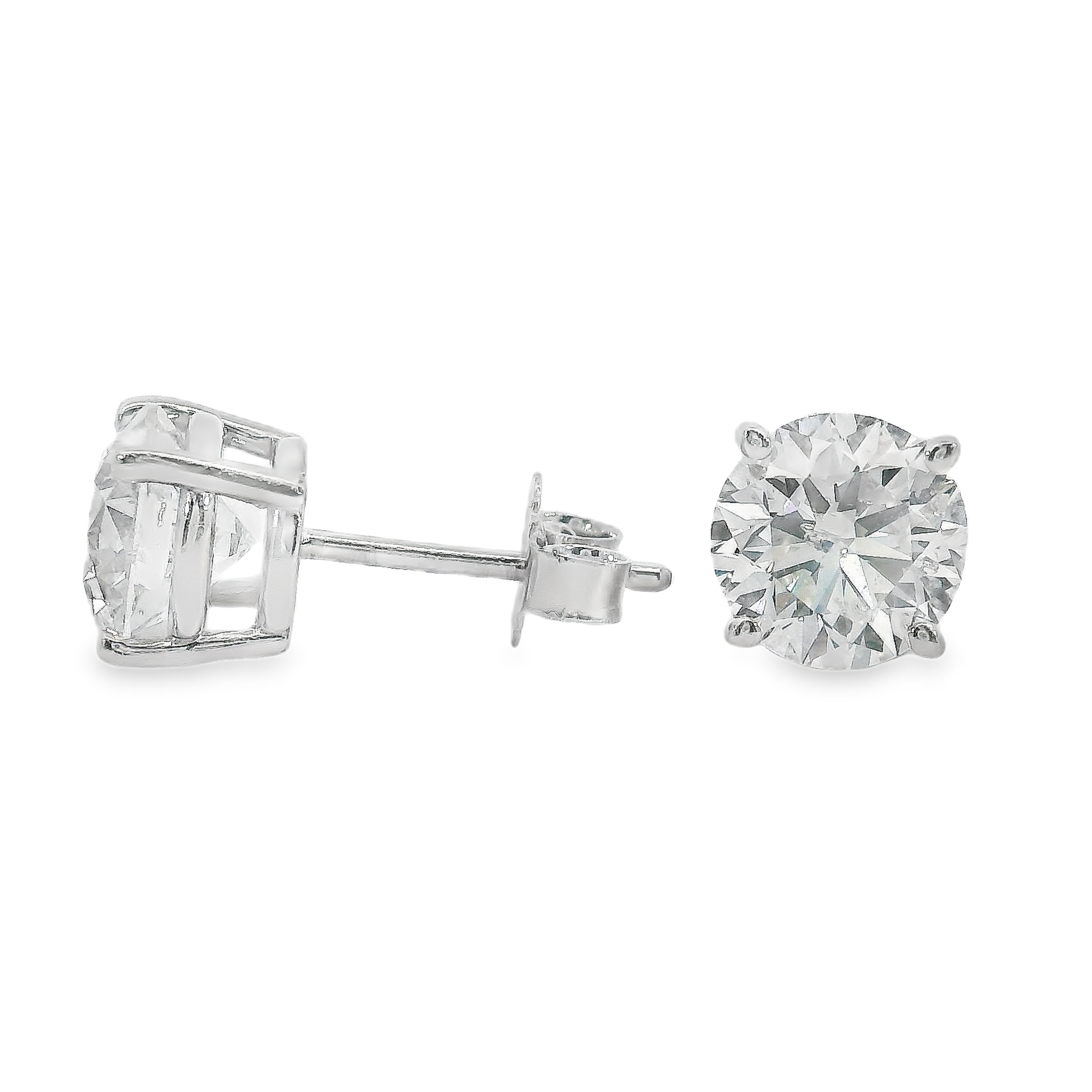 14k White Gold G Color, I2 Clarity 4 Prong Stud 2.00ct Total Natural Diamond Earrings
