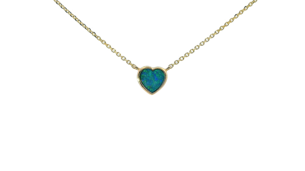 Australian Opal Doublet Heart Necklace, 14k Yellow Gold