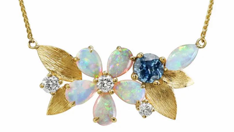 Australian Opal & Montana Sapphire Necklace, 14k Gold