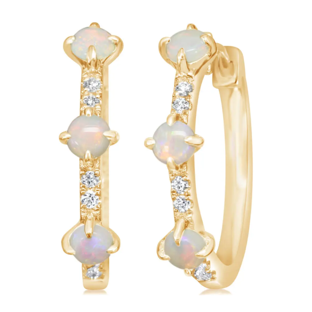 14k Yellow Gold Round Opal Medium Hoop Earrings