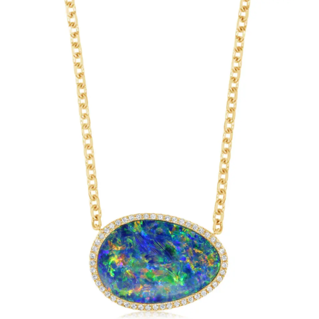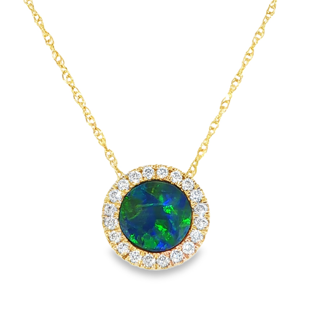 Austrailian Opal & Diamond Necklace, 14k Yellow Gold