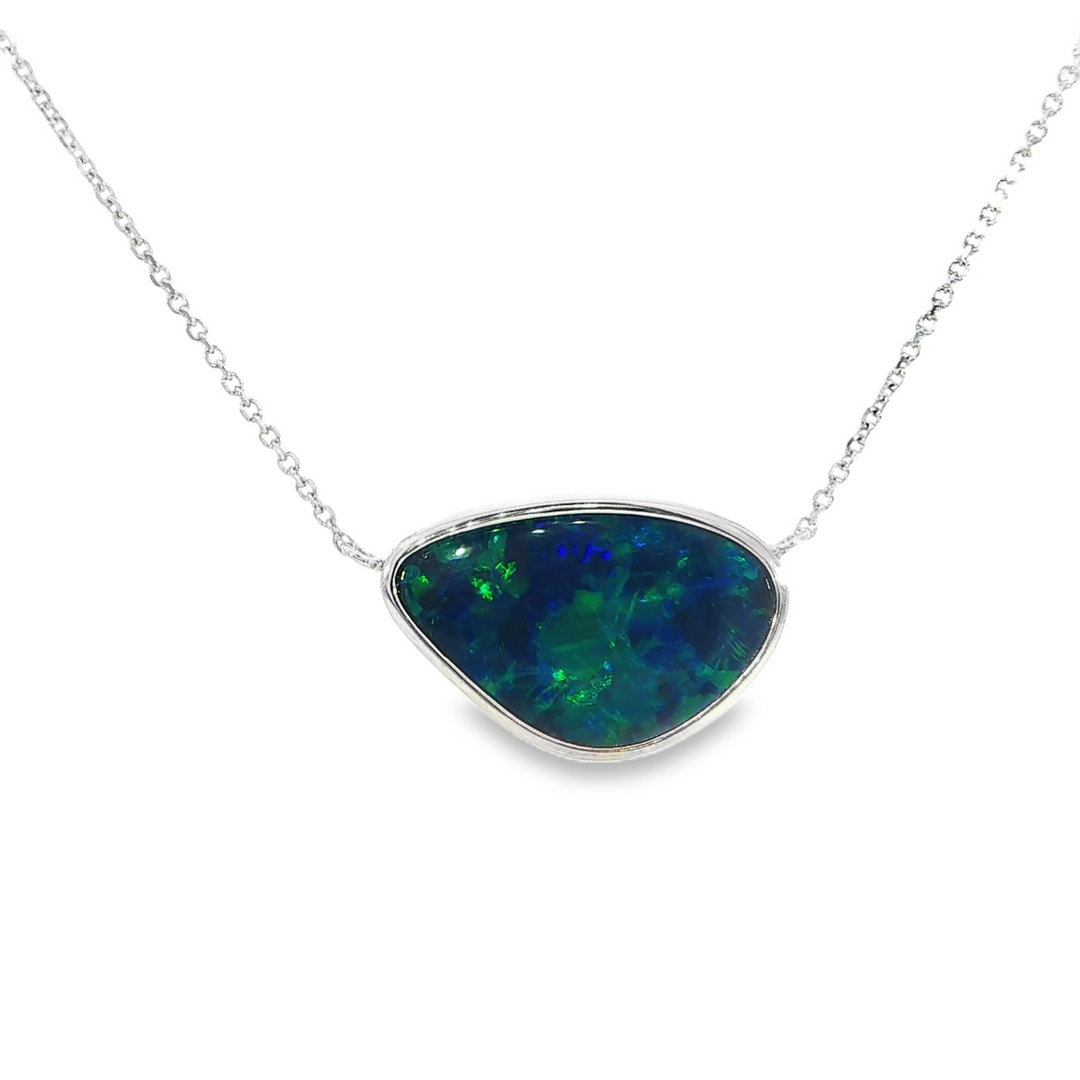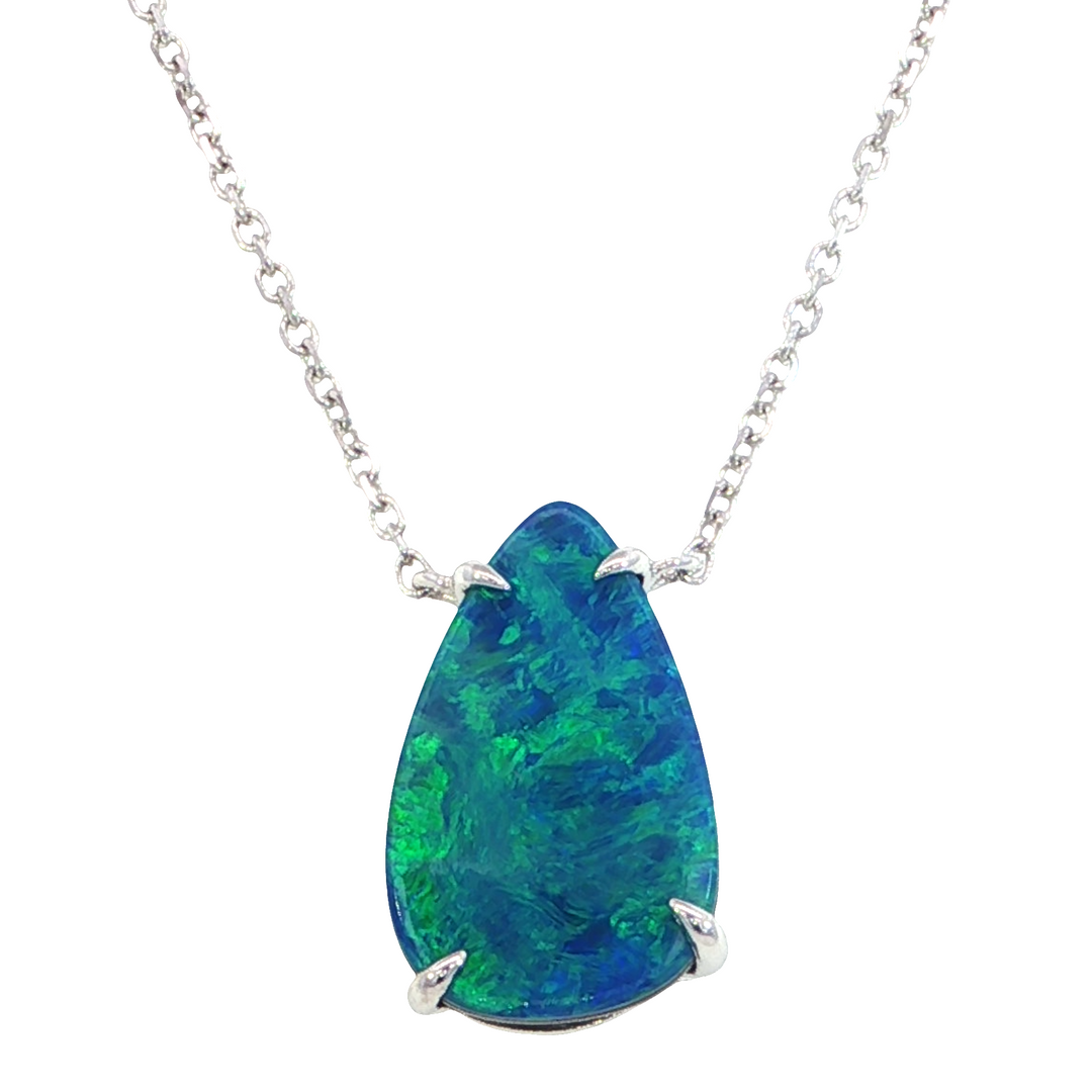 Pear-Shaped Australian Opal Doublet Necklace, 14k Gold