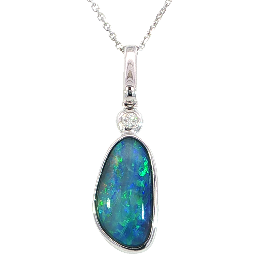 14kw Australian Opal Diamond Pendant