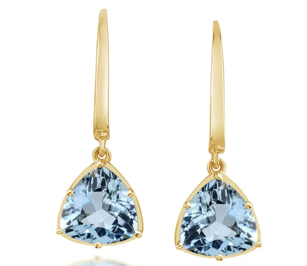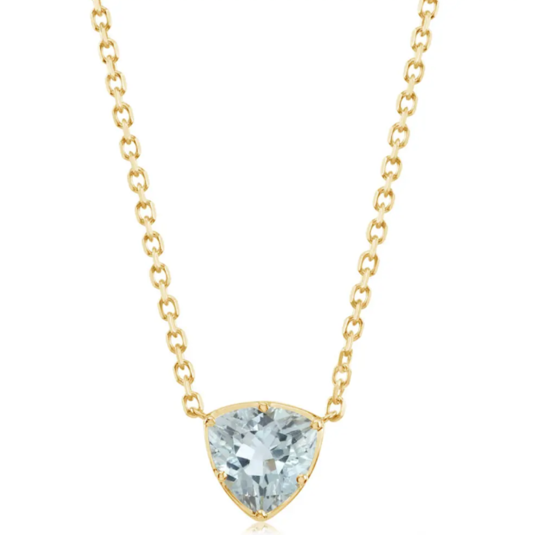 8mm Trillion Aquamarine Necklace, 14k Yellow Gold