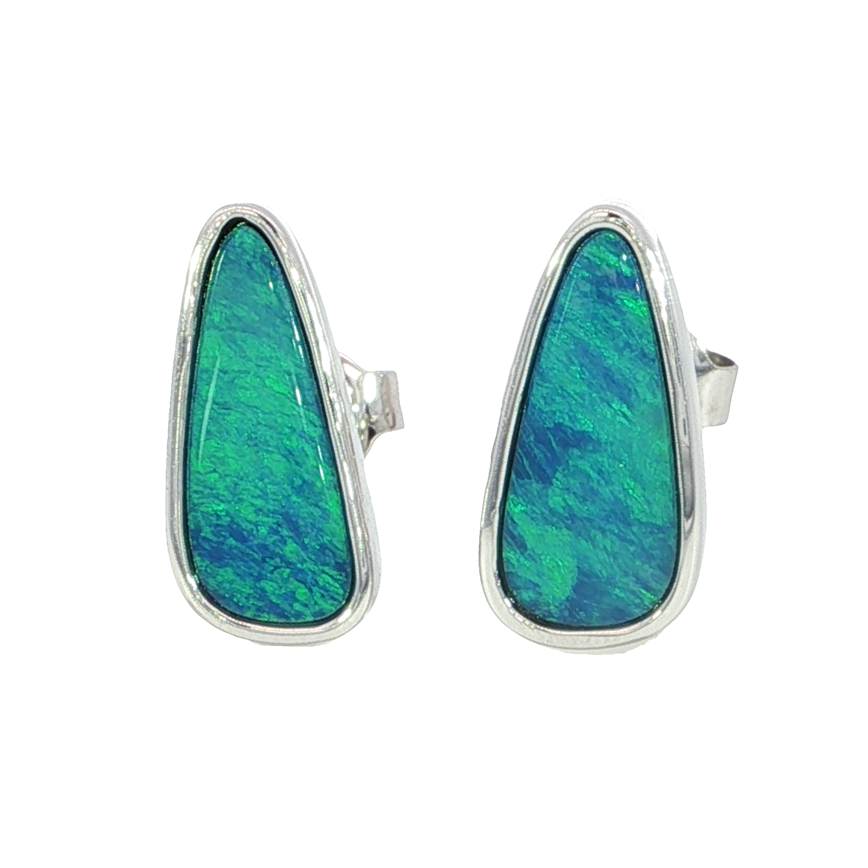 Capturing the mesmerizing play of color unique to opal, these Australian opal doublet post earrings are gracefully set in smooth bezel frames of 14k white gold. The sleek design enhances the opal’s natural brilliance, while offering a refined, modern elegance that transitions effortlessly from everyday wear to special occasions.