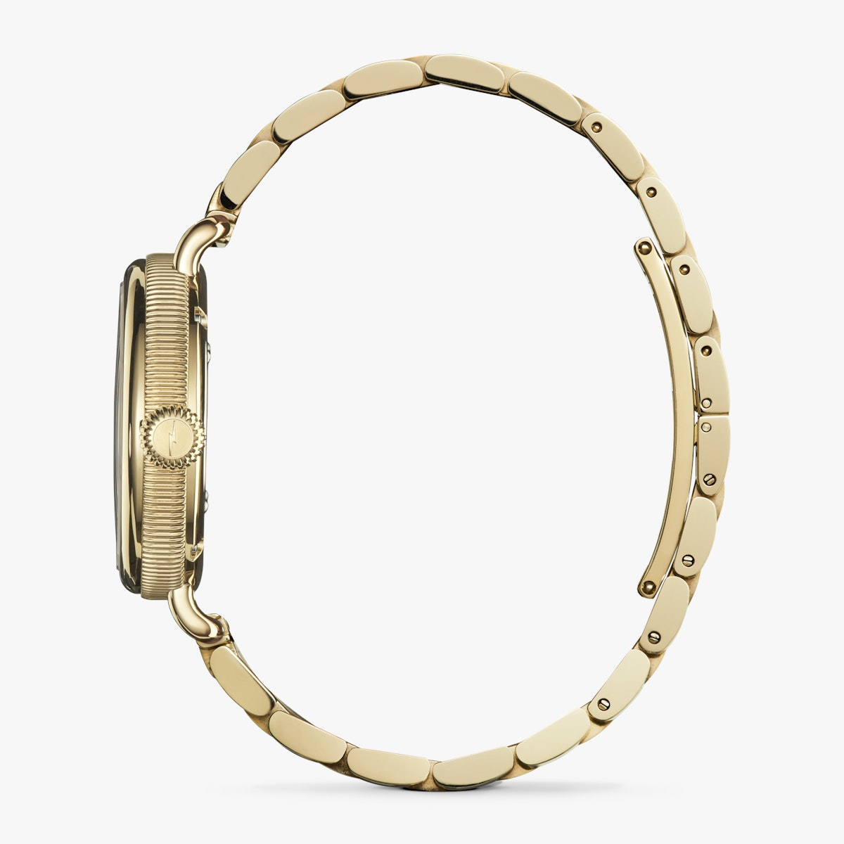 This 34mm Birdy features a gold PVD case, three-link bracelet, and a silver-toned dial showing off its unique beauty. Movement: Argonite 773 Quartz Dial Color Detail Silver Case Material: Stainless Steel Case Plating: Polished PVD Gold Case Size: 34mm Case Thickness: 9.4mm Case Back: Signature Iconic Caseback Plate with Laser-Etched Serial Number Crown Construction: Push-down Metal Bracelet PVD Gold Crystal: Double-domed Sapphire Depth Rating: 5 ATM