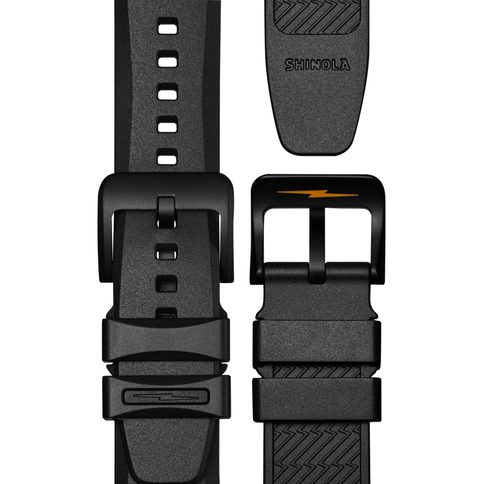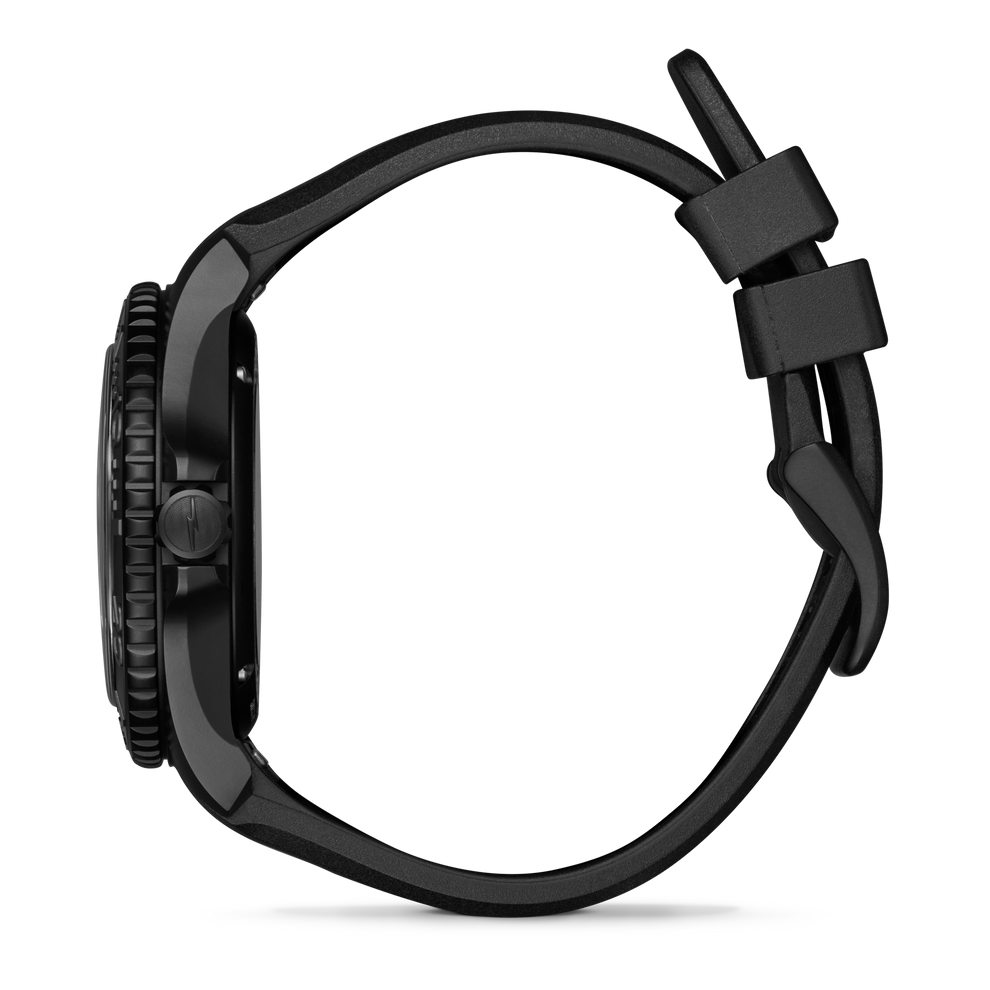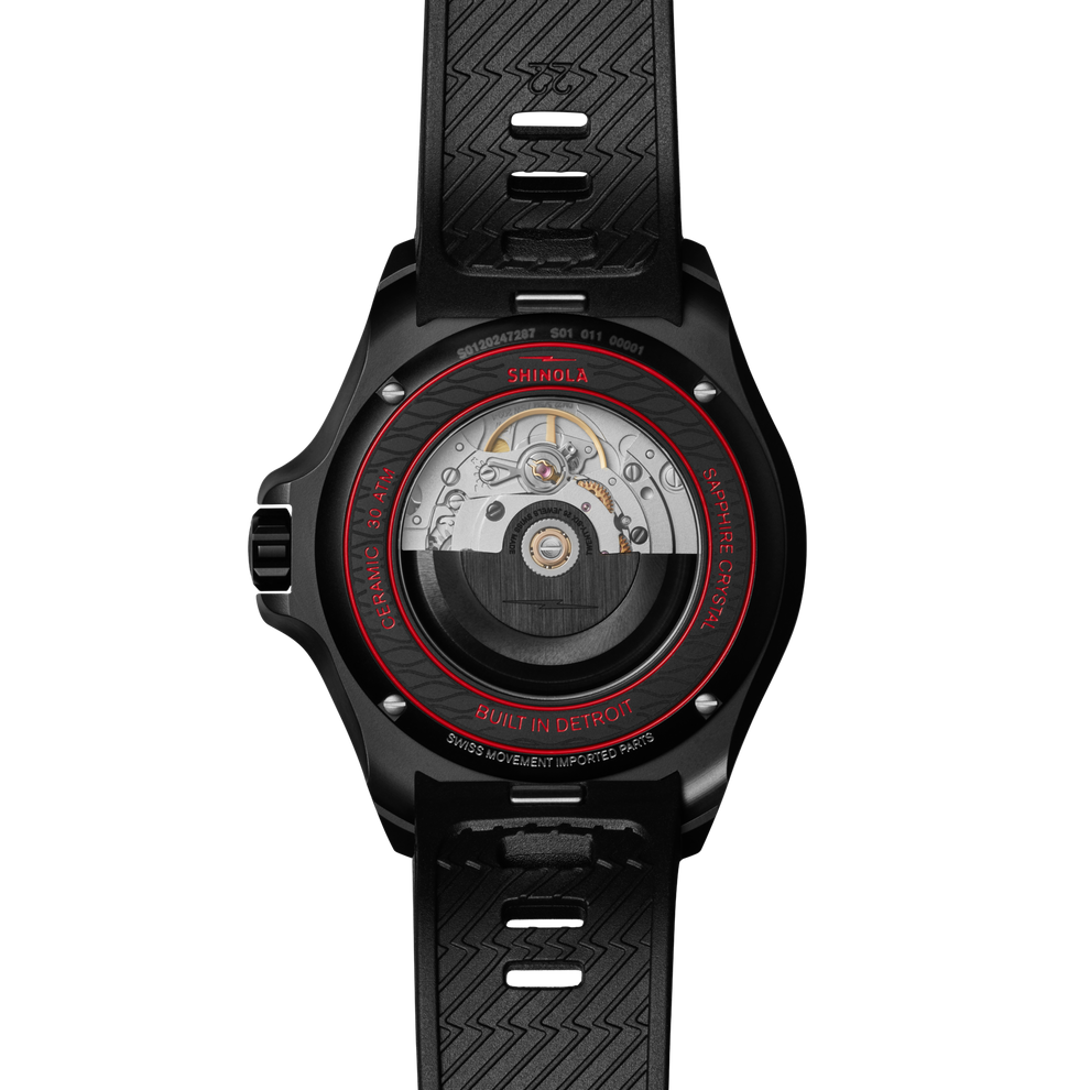 The Shinola Monster series continues to push the boundaries with cutting-edge materials and the Ceramic Monster Automatic is no different. This stunning sport watch features case body and unidirectional bezel insert crafted with scratch-resistant, lightweight black ceramic. High-grade 316 black PVD-coated stainless steel gives the core and crown Its trademark strength and durability and houses the powerful automatic movement, revealed by an exhibition window. An integrated black rubber strap is an extension of the ceramic watch case. Beautiful details harken to legendary tales of life on the water core to the Shinola Monster family. Admire the wave-etched dial and caseback and pops of color inspired by the heroic fireboats of the Great Lakes.