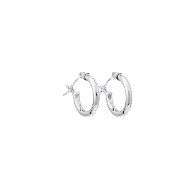 Sweet and simple 2 x14 millimeter high polish tube hoop earrings crafted in sterling silver. Their lightweight design and smooth finish make them a classic everyday style for children.