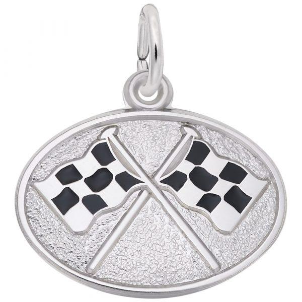 Sterling Silver Flat Racing Flags Charm
