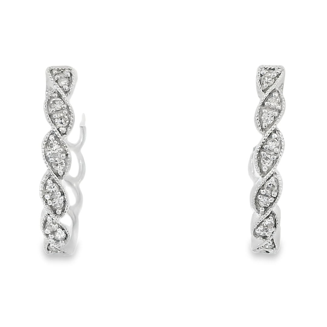 Milgrain Twisted Hoop Diamond Earrings, Sterling Silver