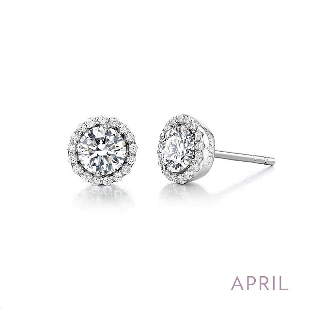 Round Cubic Zirconia Stud April Birthstone earrings in Sterling Silver