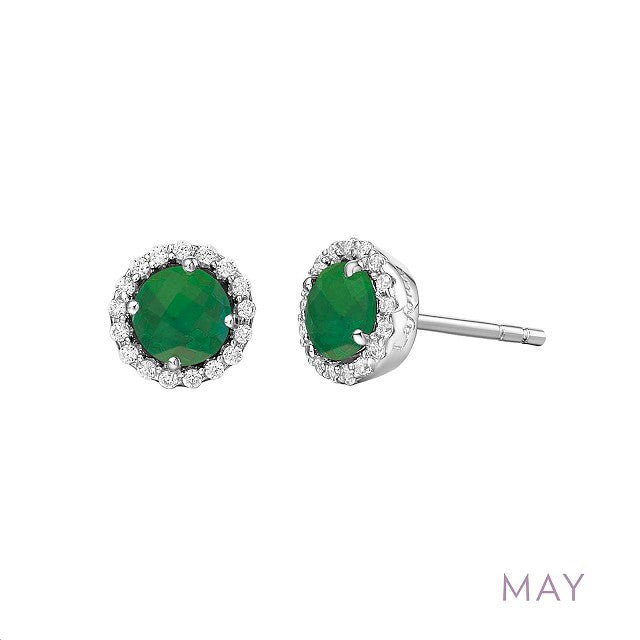 Round Imitation Stud May Birthstone earrings in Sterling Silver