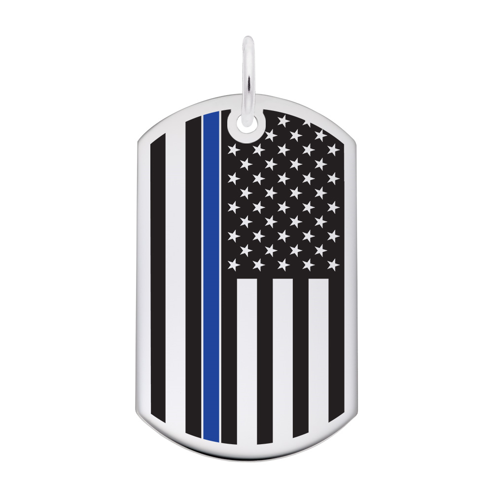 Sterling Silver Drop Dog Tag USA Flag Charm