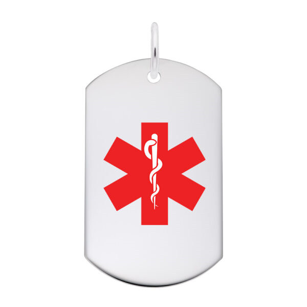 Sterling Silver Drop Dog Tag Medical Symbol Charm