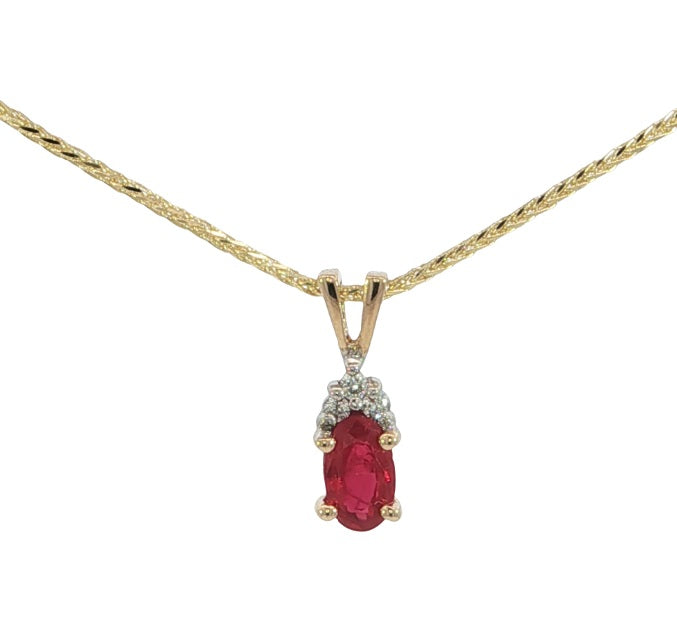 14k Yellow Gold Oval Ruby Rabbit Ear Pendant