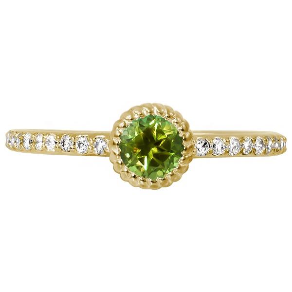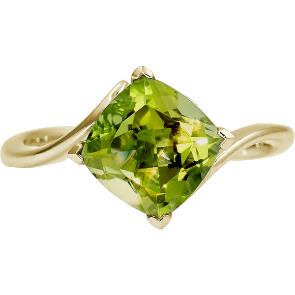 14k Yellow Gold Cushion Peridot Contemporary Ring