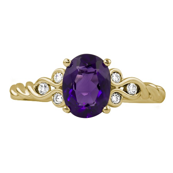 14k Yellow Gold Oval Amethyst Contemporary Ring