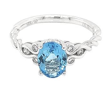 14k White Gold Oval Swiss Blue Topaz Vintage Ring