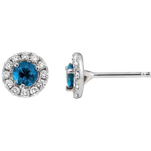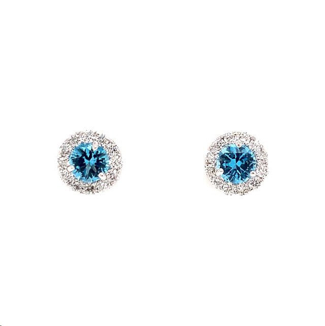 14k White Gold Round Swiss Blue Topaz Stud Earrings