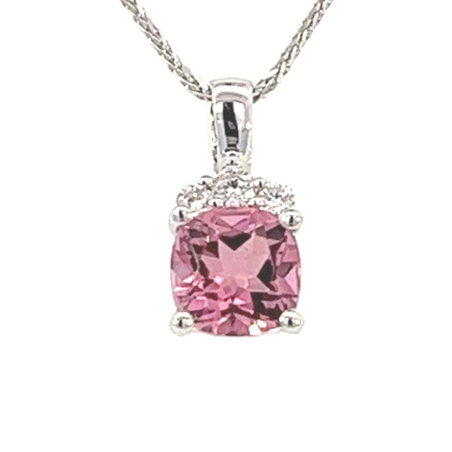14k Yellow Gold Cushion Pink Tourmaline Solitaire Pendant