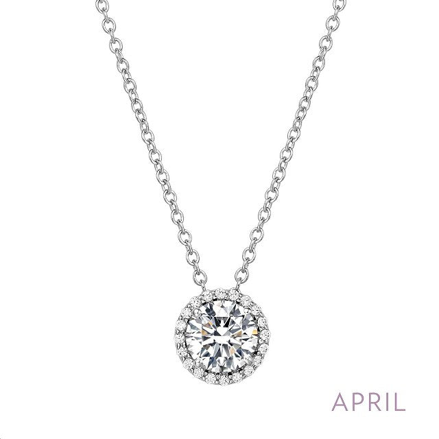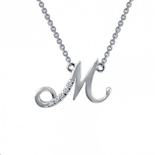 Cubic Zirconia Round Initial M Chain Attached Necklace in Sterling Silver