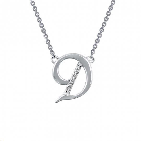 Cubic Zirconia Round Initial D Chain Attached Necklace in Sterling Silver