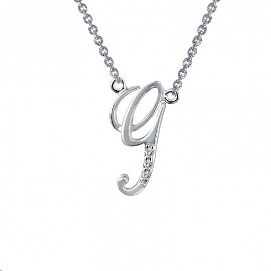 Cubic Zirconia Round Initial G Chain Attached Necklace in Sterling Silver