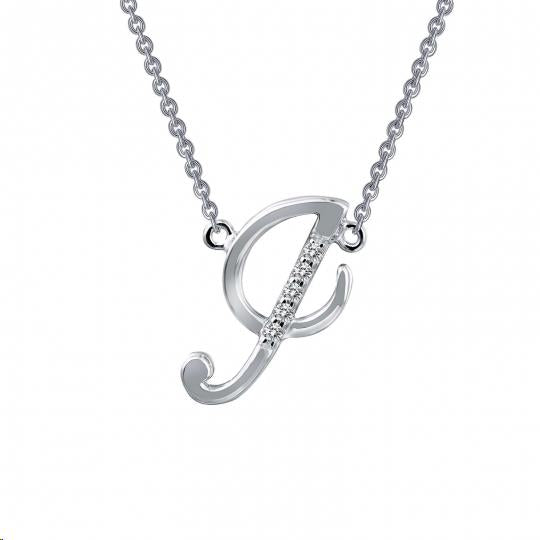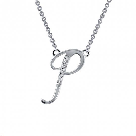 Cubic Zirconia Round Initial P Chain Attached Necklace in Sterling Silver