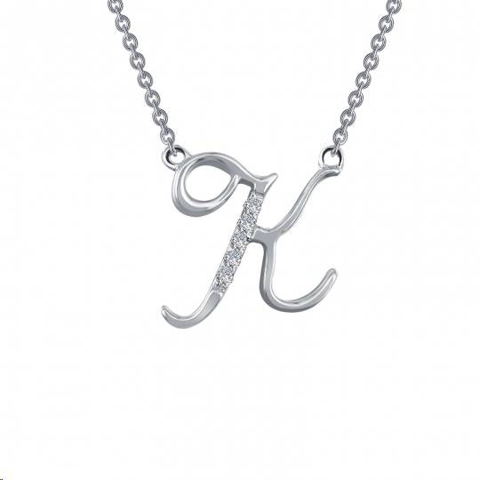Cubic Zirconia Round Initial K Chain Attached Necklace in Sterling Silver