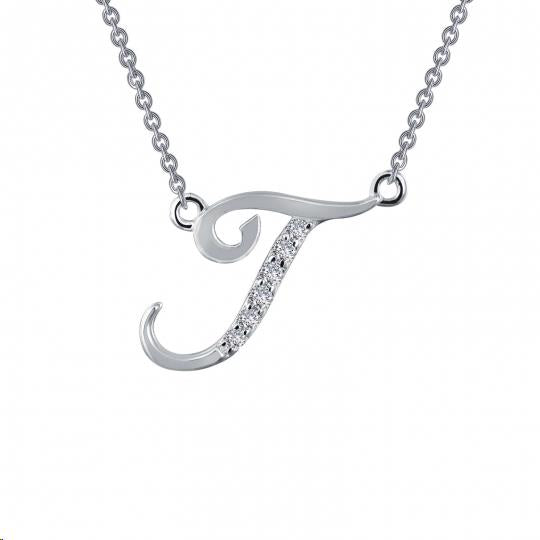Cubic Zirconia Round Initial T Chain Attached Necklace in Sterling Silver