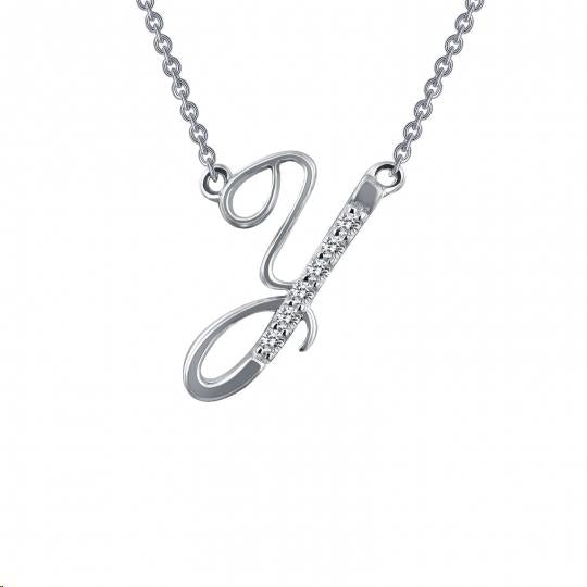 Cubic Zirconia Round Initial Y Chain Attached Necklace in Sterling Silver