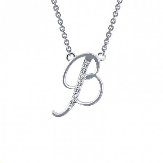Cubic Zirconia Round Initial B Chain Attached Necklace in Sterling Silver