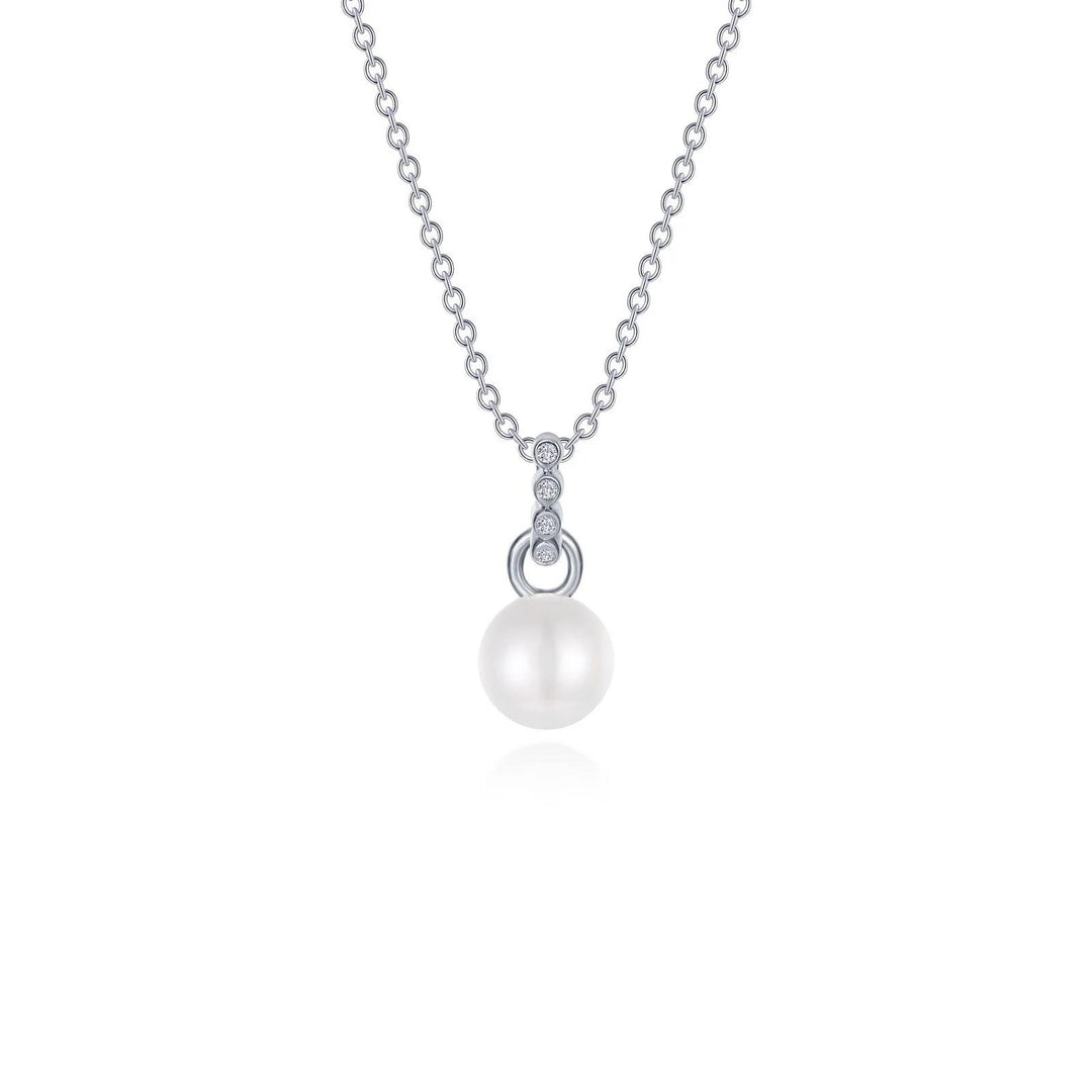 Drop 8-0-8.5mm Freshwater CZ Accented Pearl Pendant Sterling Silver