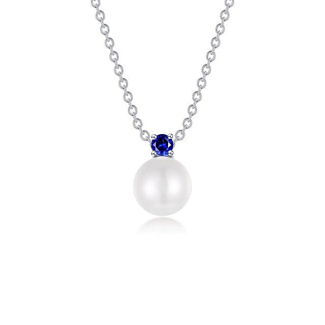 Drop 7.5-8.0mm Freshwater lab Grown Sapphire Accented Pearl Pendant Sterling Silver