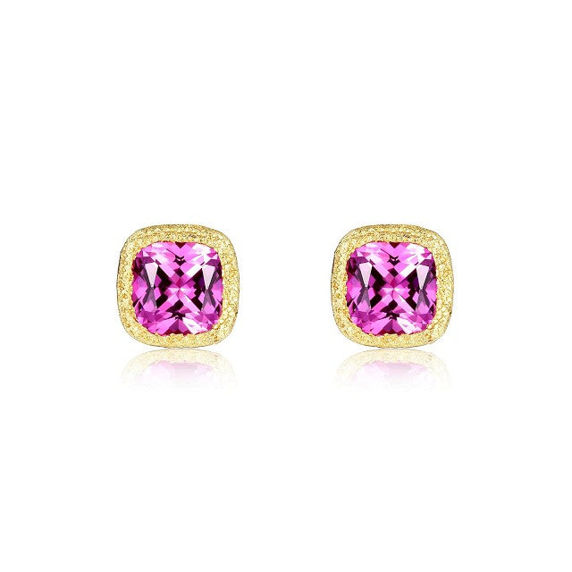 cushion-cut purple fancy lab-grown sapphire Gold Overlay Silver Earrings