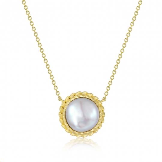 Flower 6.5-7.0mm Coin Leaf Pattern Pearl Pendant Sterling & 18k Yellow Gold Plated