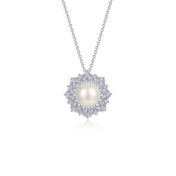 Halo 8-0-8.5mm Freshwater CZ Halo Pearl Pendant Sterling Silver