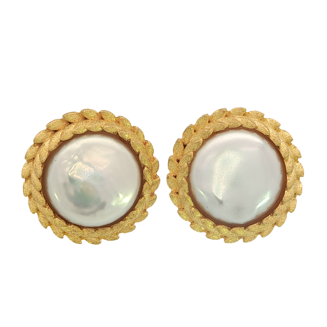 Freshwater Pearl Post leaf border Earrings 8-0-8.5mm