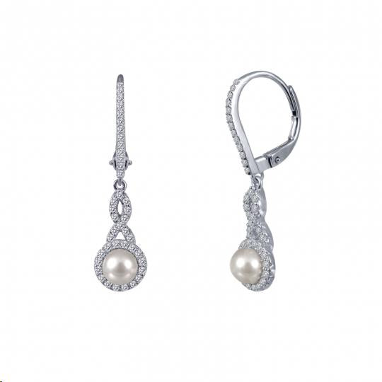 Freshwater Pearl Drop CZ Accented Earrings 5.0-5.5mm