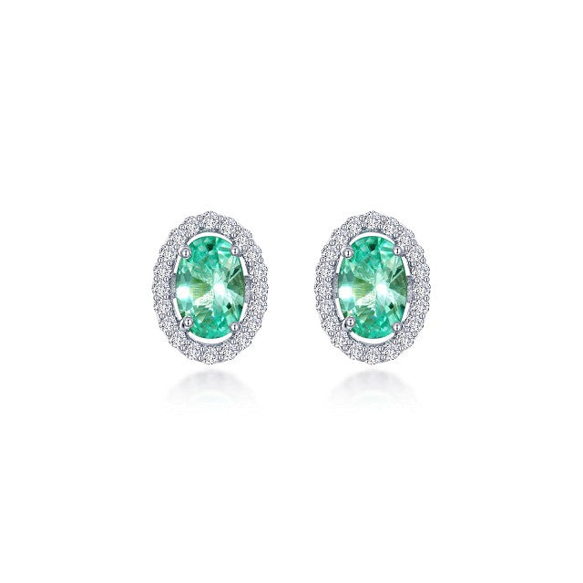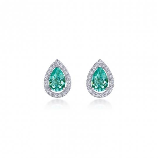 Lab Grown pear shape green sapphire earrings with halo of CZ