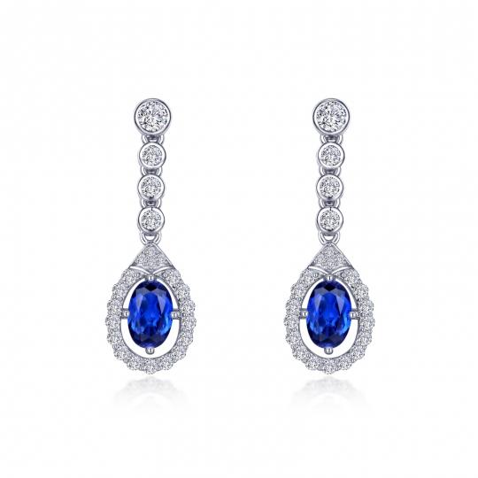 Oval Lab Grown Blue Sapphire with CZ Halo, Rhodium Silver