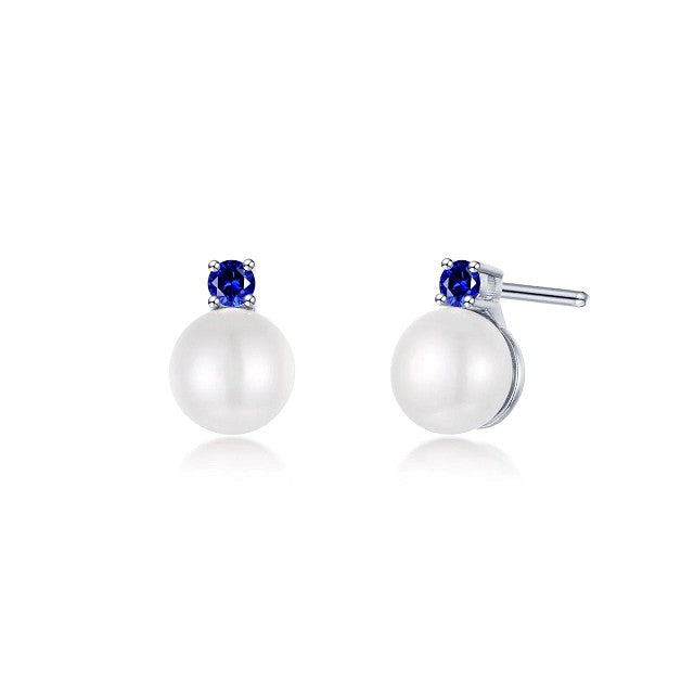Freshwater Pearl Post Lab Grown Sapphire Accent Earrings 8-0-8.5mm