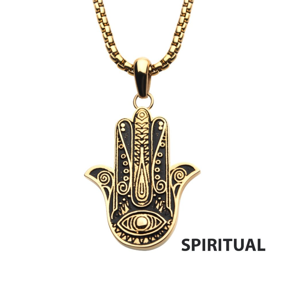 Stainless Steel Gold Plated with Hamsa Pendant,