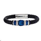 Steel and Blue Plated Bead in Black Braided Leather Bracelet