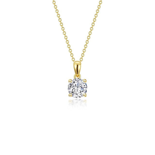 Yellow Gold overlay Silver Solitaire CZ Pendant