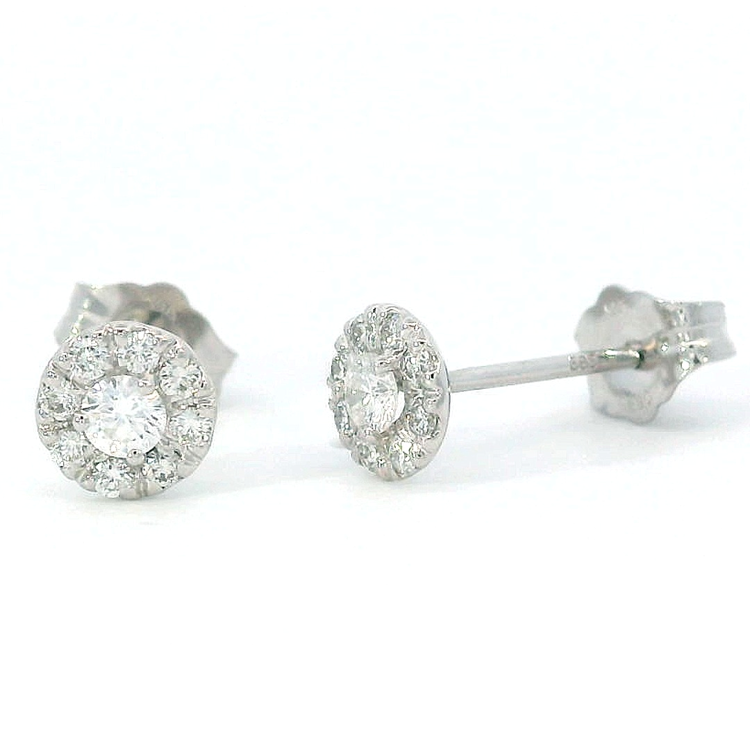 14k White Gold G Color, SI2 Clarity Halo .25ct Total Natural Diamond Earrings