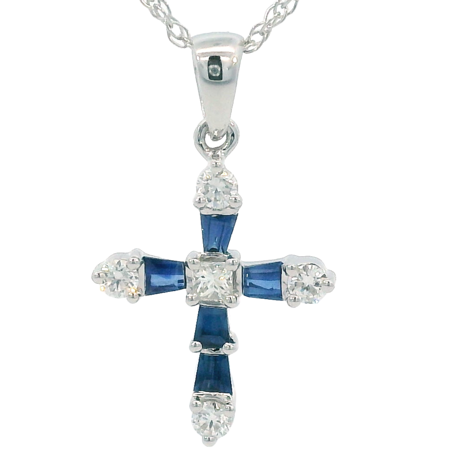 14k White Gold .10 ct Diamond Cross on 18 Inch Chain