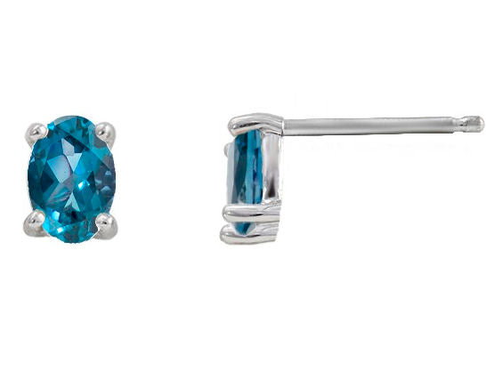 14k White Gold Oval Swiss Blue Topaz Stud Earrings